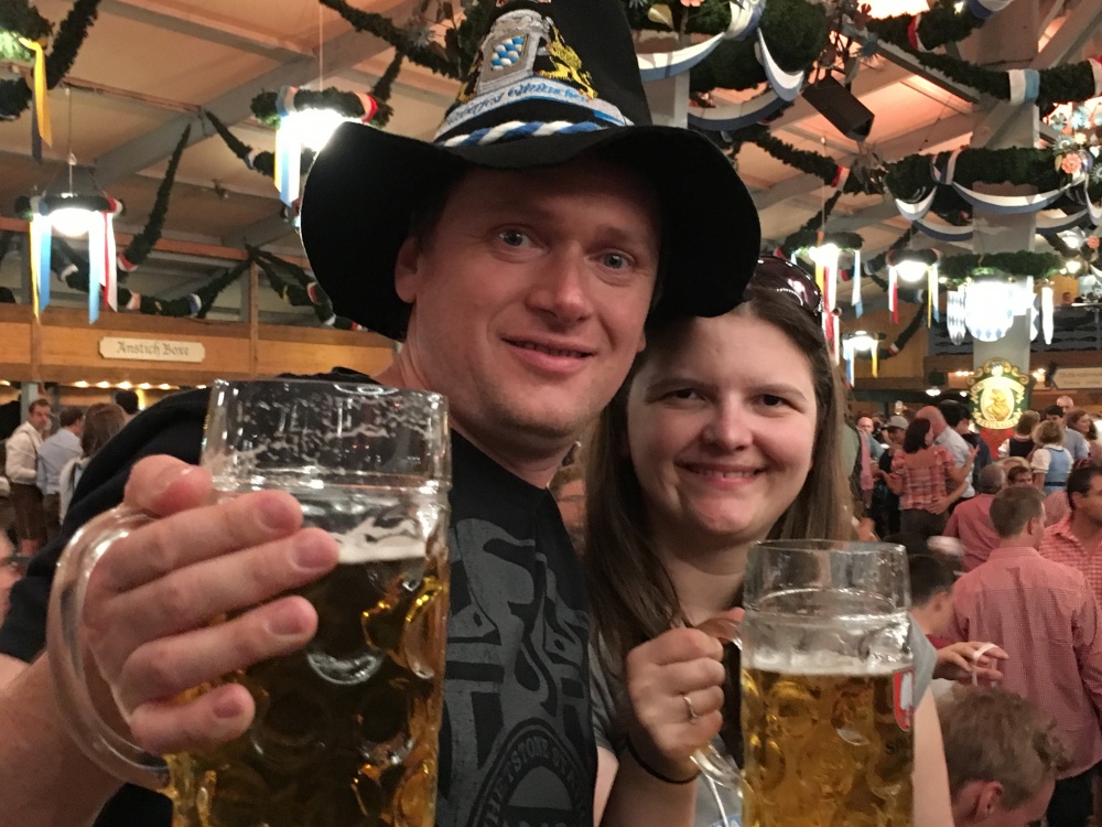 Darek & Ilona Take the World: Drinking & Singing at Munich’s Oktoberfest Mary Zakheim October 3, 2016 Travel Stories On Monday, October 3rd, we saw the end of the amazing Munich-based beer festival, Oktoberfest. A two-week extravaganza, the festival is an all-out celebration of all things beer: the grounds are stuffed to the brim with branded tents, bands, attractions, and, of course, liters and liters of ale. Most intrepid travelers list Oktoberfest as a “must do” activity — and it’s not hard to see why. We spoke with Ilona and Darek, our favorite traveling couple, to get the down low on all things Oktoberfest! They ventured to the Bavarian capital in the middle of the festival for the weekend of September 23th — 26th. It was their first time there, a fact that seemed to surprise even them! “Seriously I don’t know why [we haven’t gone there before] because my birthday is exactly in the middle of the festival,” Ilona said after their whirlwind weekend trip. “It’s a mistake that we haven’t been there before,” Her husband, Darek, chimed in. After looking through their pictures, we can see why! The festival is a raucous, but organized celebration — complete with overflowing steins, huge pretzels, and generous locals. The pair marveled at how such a huge, alcohol-filled fest could be so well maintained. “It’s the biggest festival in the world and they managed it perfectly. I was surprised that such a big crowd was having fun without any accidents,” Ilona said. A curious feat, as standing up on the narrow benches and waving steins full of beer around in a normal occurrence in the tents. “For me the best memories are from the tent where we were dancing on the benches, meeting people from around the world, and singing German songs that we had no idea what we were singing about. But it was fun and I will never forget it!” Ilona said, remembering her favorite parts of the festival. Darek, however, has a different favorite memory. “I liked that the smallest and only size of the beer was one liter. I was thinking that my beer will get warm before I finish. But I was wrong – there was no time for that!” He said. During Oktoberfest, visitors from around the world (and, of course, from Munich, the host city) roam the festival grounds, weaving in and out of the famous Bavarian brewery tents — singing along to German drinking songs and trying to get a seat at one of the crowded tables. “You cannot buy beer outside of the tents. So, of course we had to go in. It wasn’t easy [to get a table], but I wouldn’t call myself Darek if I couldn’t get a table for my wife’s birthday!” Darek said, noting how hard it can be to get a bench without reservations. A lot of visitors and locals alike dress in the traditional Bavarian costume: dirndls for the women and lederhosen for the men. Did the two of them dress up for the festivities? “No,” Darek says, but added, “It will be the first and last time that I go there without the proper attire.” “First I thought that not a lot of people would dress up,” Ilona said. “How wrong I was! Almost half of the crowd had on the typical Bavarian outfits.” We wondered, after drinking so much beer for four days straight, if the couple had any tips for first time Oktoberfest attendees. “Yes!” Ilona said. “Food is important, so make sure you have a nice dinner. Luckily, German cuisine is pretty fat and hearty. So we were good.” “If you are on any type of diet – screw that, it’s not a place for that,” Darek added. “You will thank me later.” The pair also traveled to the nearby Neuschwanstein Castle, a 19th century castle in southwest Bavaria, and wandered around Munich’s laid-back streets. It was something other than the region’s fairytale charm that captured the hearts of our intrepid travelers, though. “What I like the most – I think the food. I really enjoyed food at the Hofbräuhaus!” Ilona said, after Darek noted the city’s more practical assets, like its bike-friendliness, cleanliness, and medium size. After a four-day trip to the world’s most lauded beer festival, we asked the couple if there was anything that those who want to attend Oktoberfest in the future should know or keep in mind. “Two things. First: learn how to dance on the wet, sticky, narrow bench with the full mug of beer,” Darek said. “Second, know how to say ‘Cheers!’ in as many languages as possible. You will meet people there from around the world.” “Prost!” Ilona cheered. All images courtesy Ilona Maslanka.