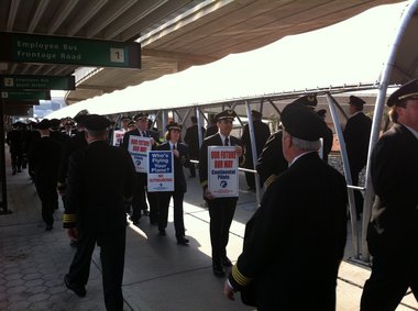 United & Continental Pilots Protest Over ‘Outsourcing’ to Smaller Airlines CheapOair Staff November 23, 2010 general Hundreds of United and Continental airlines pilots were out in full force at Newark Liberty International Airport Monday protesting the company’s practice of outsourcing their work to smaller regional airlines. The pilots fear that with the merger of the two carriers the practice of outsourcing will grow, meaning less work or in some cases no work for pilots. Over 300 pilots were outside Terminal C Monday afternoon with such signs as “United Against Outsourcing” and “Who’s Flying Your Plane” in hand while customers walked in and out of the airport. According to the Airlines Pilots Association, the protests were scheduled to take place over three days with off-duty pilots marching in Newark on Monday, Houston on Tuesday and Chicago next Wednesday. Under a new contract the airline is hoping to outsource work to smaller carriers which carry up to 70 passengers on-board. Currently Continental is only allowed to outsource to partners that carry up to 50 passengers on their jets. Pilots are worried that they will see less work or no work if the new deal goes into effect. United already has 1,400 pilots on furlough, Continental has about 140 pilots on furlough. United Continental Holdings denies the claim by the pilots union and says that workers will not be effected by the new deal. The carriers are expected to redeploy about 300 planes, which will be operated under United Express, in order to meet high demand and improve profitability. Source: Houston Chronicle